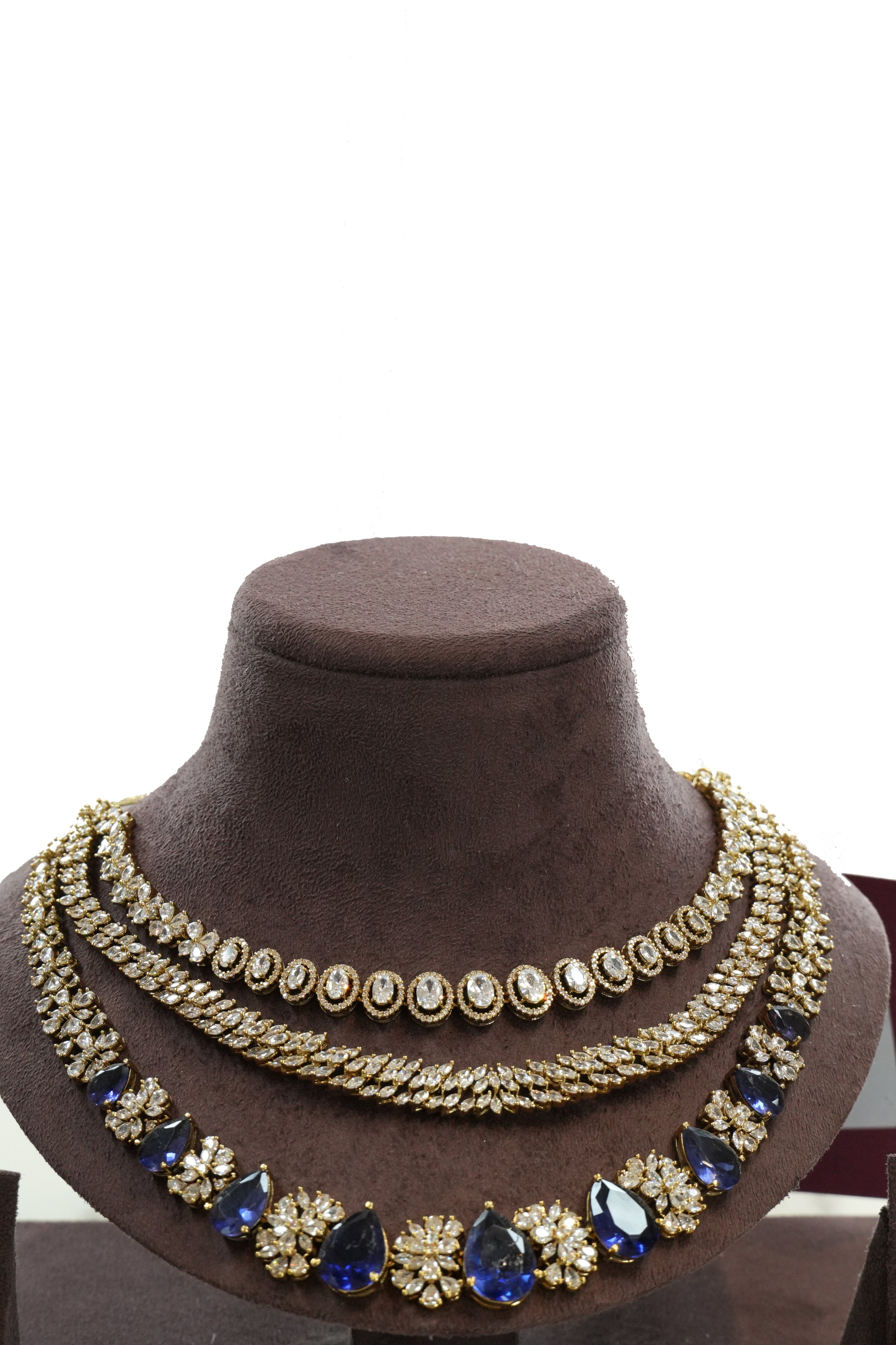 Add a royal touch to your collection with this exquisite Blue Stone Layered Necklace Set. Designed with multiple strands of deep blue stones, the layered style creates a bold yet graceful look that stands out beautifully at weddings, festive events, or special celebrations.