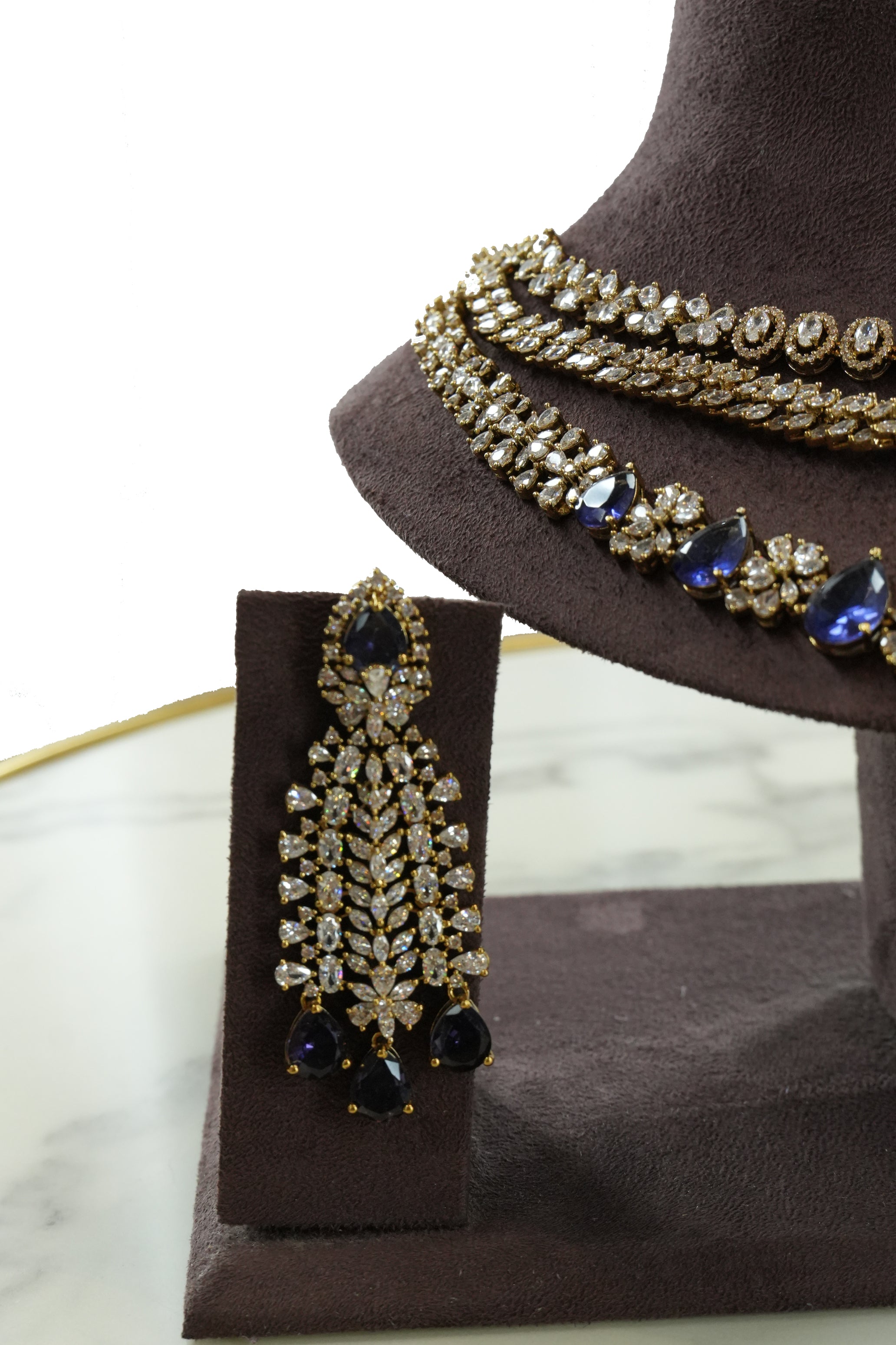 Perfect for brides and women who love sophisticated jewelry, this blue stone necklace set pairs effortlessly with sarees, lehengas, and gowns for a timeless finish.